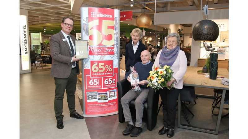 Ein Beispiel ist der Bad Nenndorfer Willi Liecker, der noch einen alten Kaufvertrag aus dem Jahre 1958 fand und diesen mit in die Filiale im Kurort brachte. Möbel Heinrich feiert Jubiläum und die die treuen Kundinnen des Möbelhauses feiern mit. Dies galt auch für Willi Liecker, der mit dem Kaufvertrag ein kleines Stück Zeitgeschichte an das Team von Möbel Heinrich übergab. Der Rentner und langjährige Kunde hatte daheim noch den Belag aus dem Gründungsjahr des Unternehmens 1958 gefunden. Er kaufte damals zwei Cocktailsessel und zwar direkt beim inzwischen verstorbenen Firmengründer Heinrich Struckmann. Die erste Verkaufsstelle befand sich in Rodenberg in der der Langen Straße, wie sich Willi Liecker und seine Frau Waltraud Liecker erinnerten. Gründer Heinrich Struckmann erledigte damals noch alles persönlich, angefangen von der Bestellung der Waren über den Verkauf bis hin zur Auslieferung an seine Kunden. „Alles aus einer Hand, von einer Person. Das ist heute absolut nicht mehr vorstellbar“, bemerkte Hausleiter Christian Krückeberg. Schließlich hat sich Möbel Heinrich mit inzwischen rund 800 Mitarbeitern, drei großen Einrichtungshäusern und vier Mitnahmemärkten zu einem der größten Möbeleinzelhändler und Arbeitgeber in der Region entwickelt. 250 Mark zahlten Willi und Waltraud Liecker im Gründungsjahr für die beiden Sessel des Typs „Nizza“. Kurz nach der Hochzeit des Paares fanden diese ihren Platz in der gemeinsamen Wohnung. Eine lohnende Anschaffung, die Sessel hätten sich als ausgesprochen langlebig erwiesen, wie Waltraud Liecker lobte.